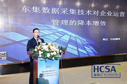 隨后,東集行業(yè)顧問陳立發(fā)表主題演講,向嘉賓解讀了東集深厚的技術(shù)積淀、豐富的行業(yè)經(jīng)驗,誠邀行業(yè)伙伴攜手開拓數(shù)字化生態(tài)服務(wù)新藍海。